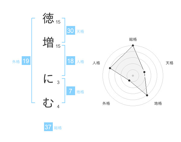 徳増 にむさんの地格は7画の4点!