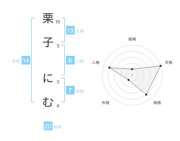 栗子 にむさんの天格は13画の5点!