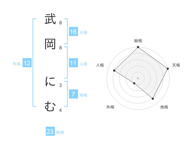 武岡 にむさんの総格は23画の5点!