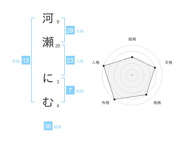 河瀬 にむさんの外格は13画の5点!