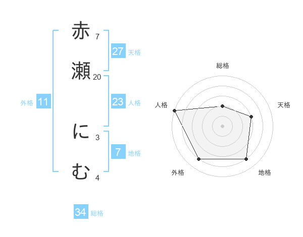 赤瀬 にむさんの総格は34画の2点!