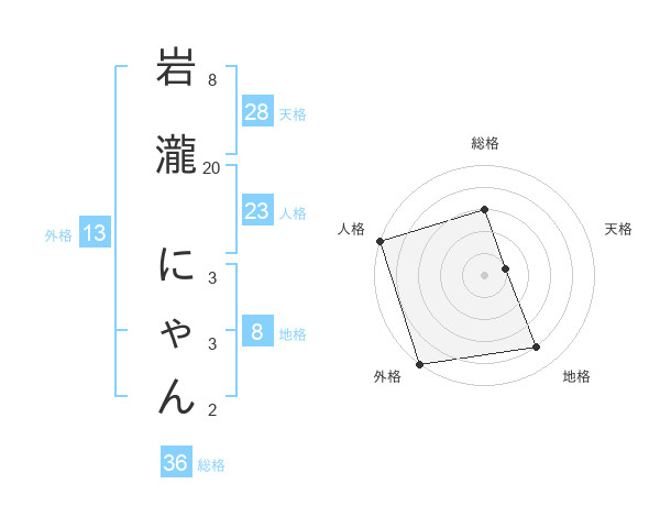 岩瀧 にゃんさんを姓名の画数から五運を鑑定