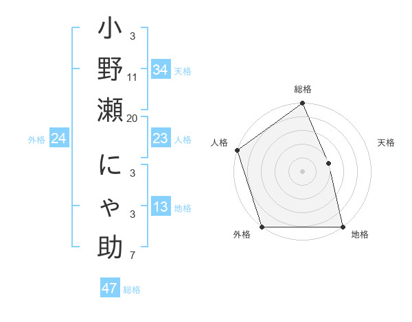 小野瀬 にゃ助さんを姓名の画数から五運を鑑定