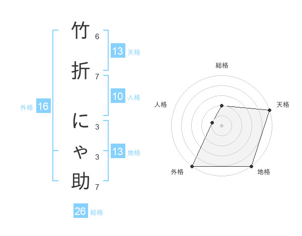 竹折 にゃ助さんの地格は13画の5点!