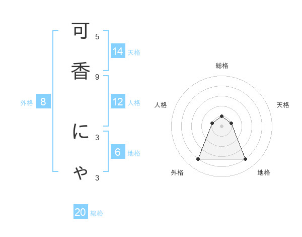 可香 にゃさんの総格は20画の1点!