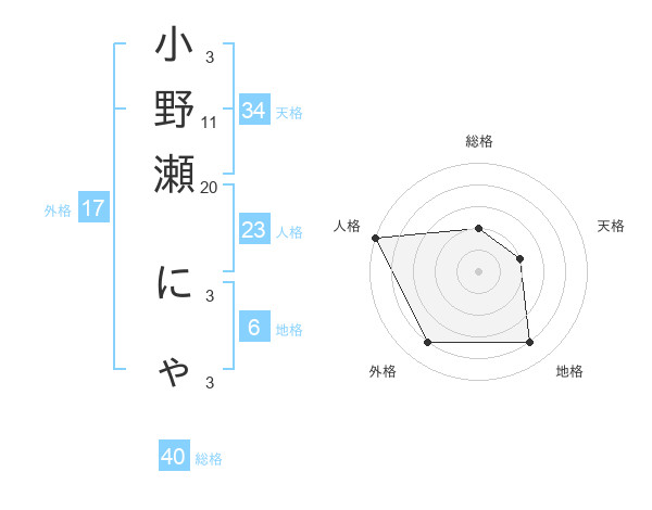 小野瀬 にゃさんの外格は17画の4点!