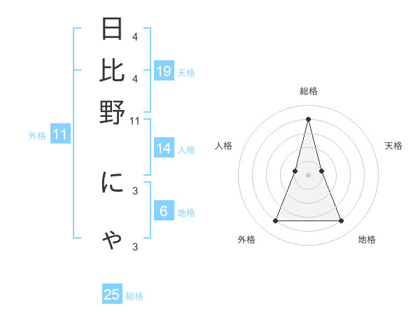 日比野 にゃさんを姓名の画数から五運を鑑定