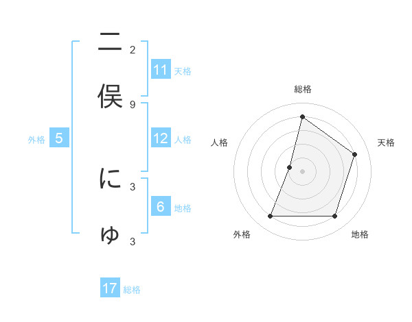 二俣 にゅさんの総格は17画の4点!