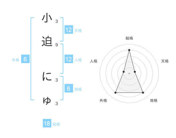 小迫 にゅさんの総格は18画の4点!