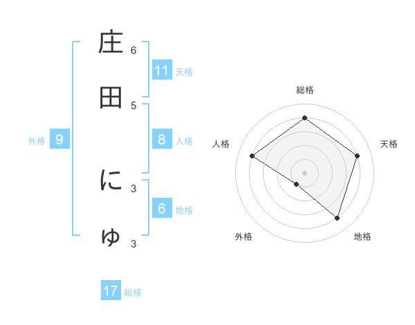 庄田 にゅさんを姓名の画数から五運を鑑定