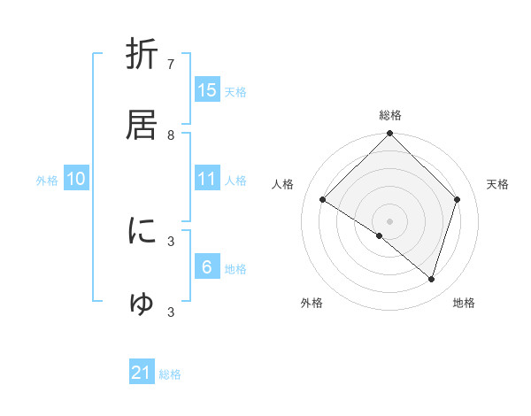折居 にゅさんの総格は21画の5点!