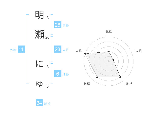 明瀬 にゅさんを姓名の画数から五運を鑑定