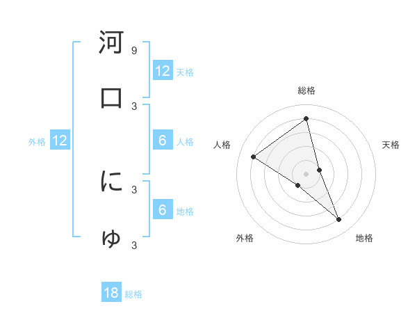河口 にゅさんの天格は12画の1点!