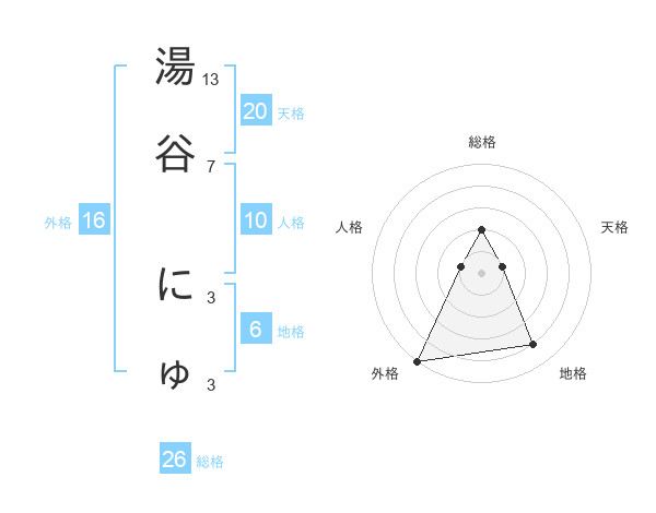 湯谷 にゅさんの総格は26画の2点!