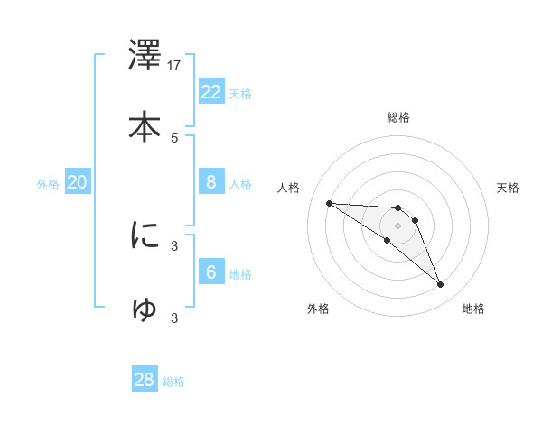 澤本 にゅさんの天格は22画の1点!