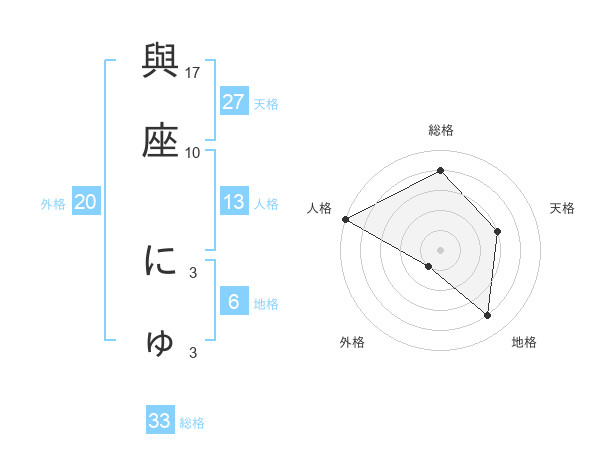 與座 にゅさんの総格は33画の4点!