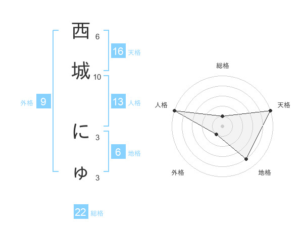 西城 にゅさんの天格は16画の5点!
