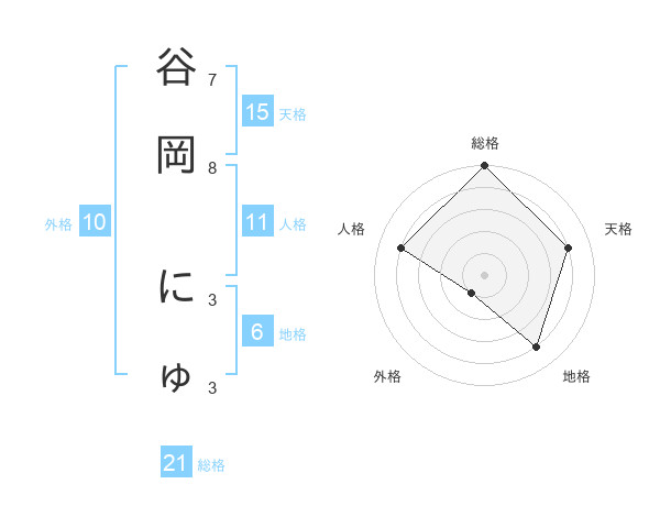 谷岡 にゅさんの外格は10画の1点!