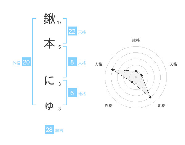 鍬本 にゅさんの天格は22画の1点!