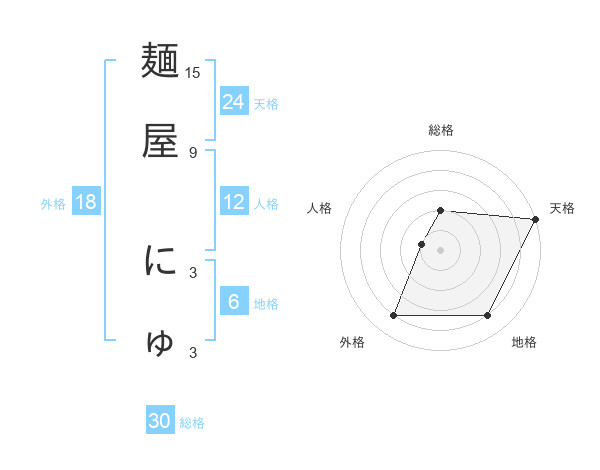 麺屋 にゅさんを姓名の画数から五運を鑑定