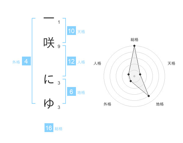 一咲 にゆさんを姓名の画数から五運を鑑定