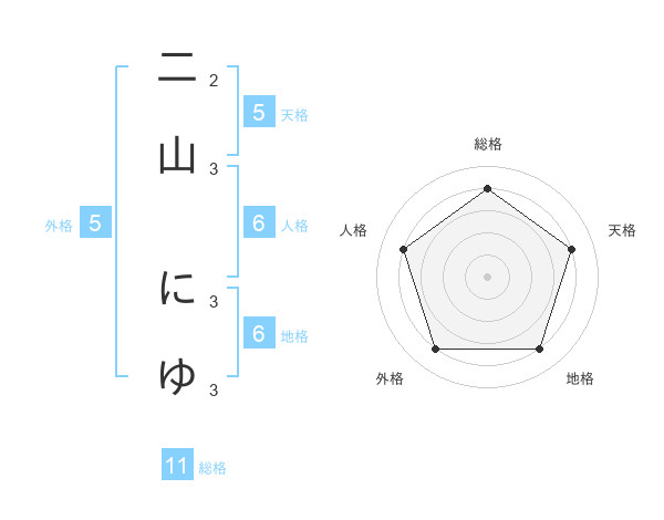 二山 にゆさんの総格は11画の4点!
