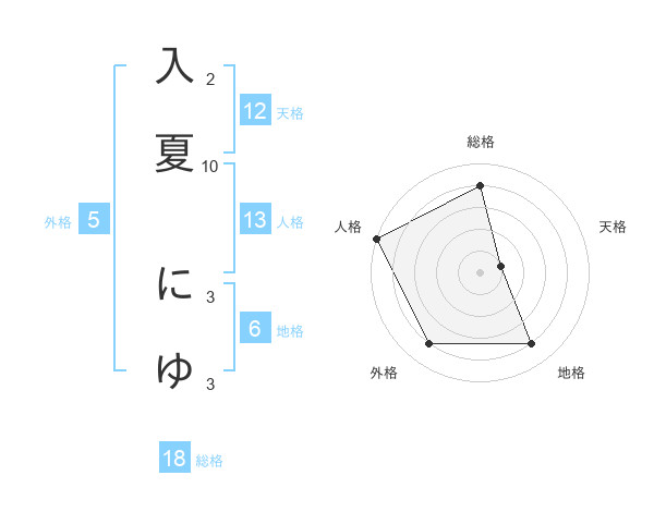 入夏 にゆさんの天格は12画の1点!