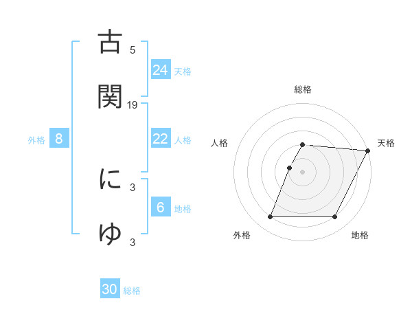 古関 にゆさんの天格は24画の5点!