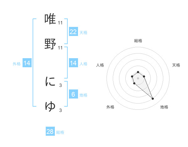 唯野 にゆさんの天格は22画の1点!