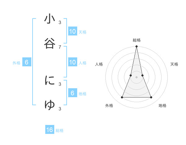 小谷 にゆさんを姓名の画数から五運を鑑定