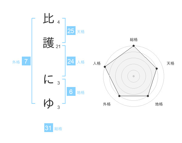 比護 にゆさんの総格は31画の5点!