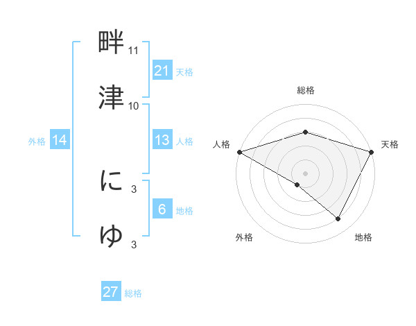 畔津 にゆさんの総格は27画の3点!