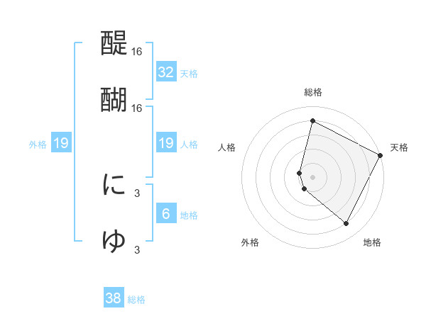 醍醐 にゆさんの総格は38画の4点!