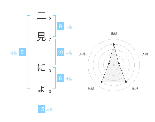 二見 にょさんの総格は15画の4点!