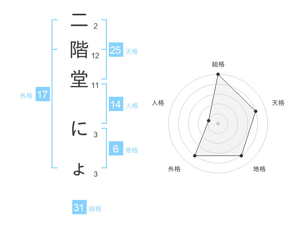 二階堂 にょさんを姓名の画数から五運を鑑定