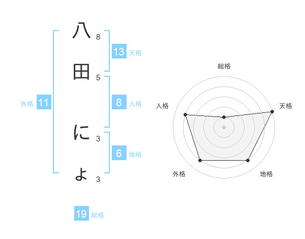 八田 にょさんの天格は13画の5点!