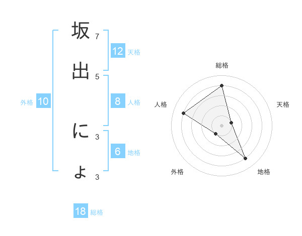 坂出 にょさんの天格は12画の1点!