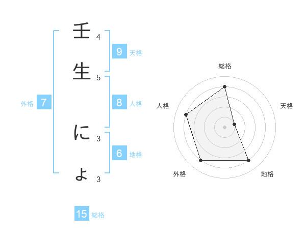 壬生 にょさんの総格は15画の4点!