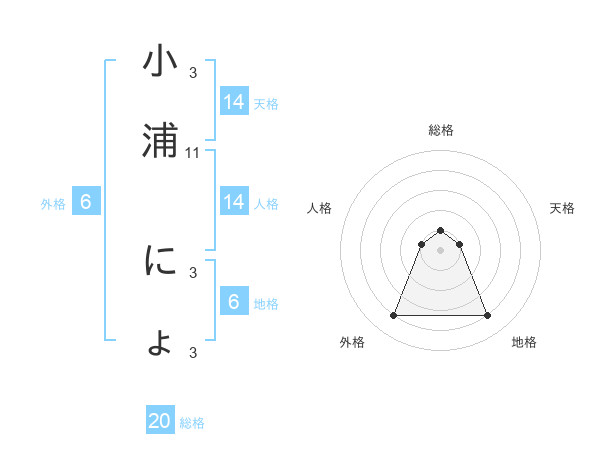 小浦 にょさんの総格は20画の1点!