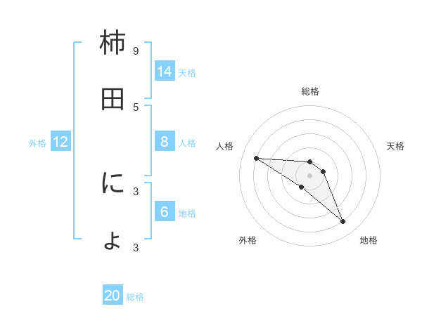 柿田 にょさんの総格は20画の1点!