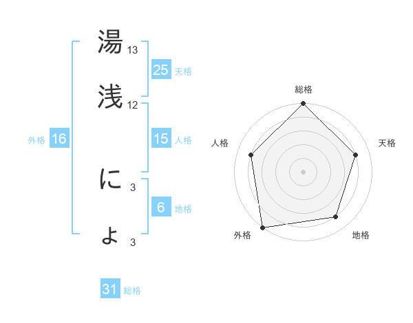 湯浅 にょさんの総格は31画の5点!