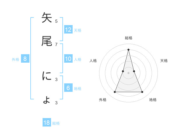 矢尾 にょさんの天格は12画の1点!