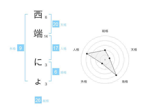 西端 にょさんの地格は6画の4点!