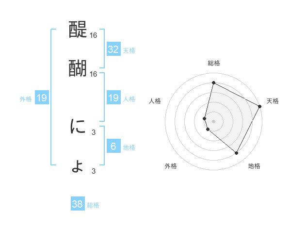 醍醐 にょさんの総格は38画の4点!