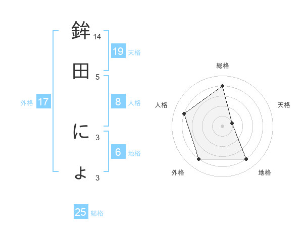 鉾田 にょさんの天格は19画の1点!