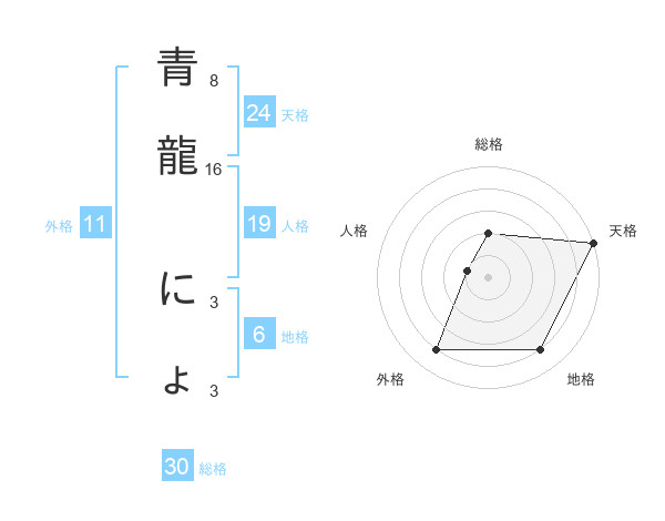 青龍 にょさんの天格は24画の5点!