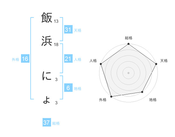 飯浜 にょさんを姓名の画数から五運を鑑定
