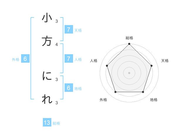 小方 にれさんの総格は13画の5点