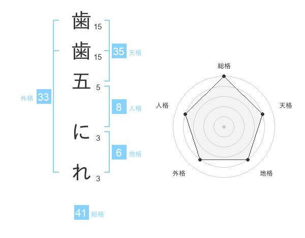 歯歯五 にれさんの総格は41画の5点!