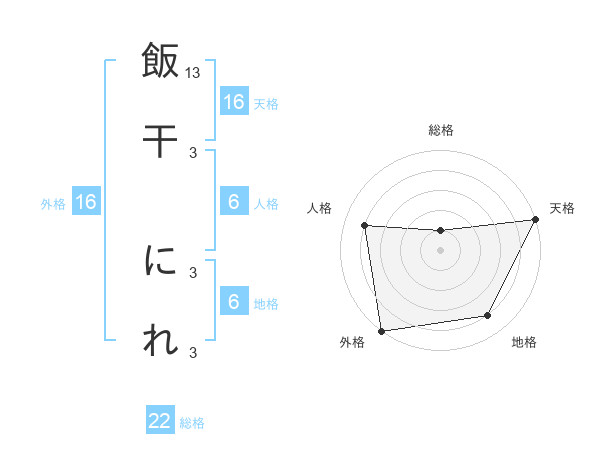 飯干 にれさんの総格は22画の1点!